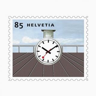 The Swiss postage stamp with the Mondaine dial was created by Ursus Wehrli for Swiss Post.